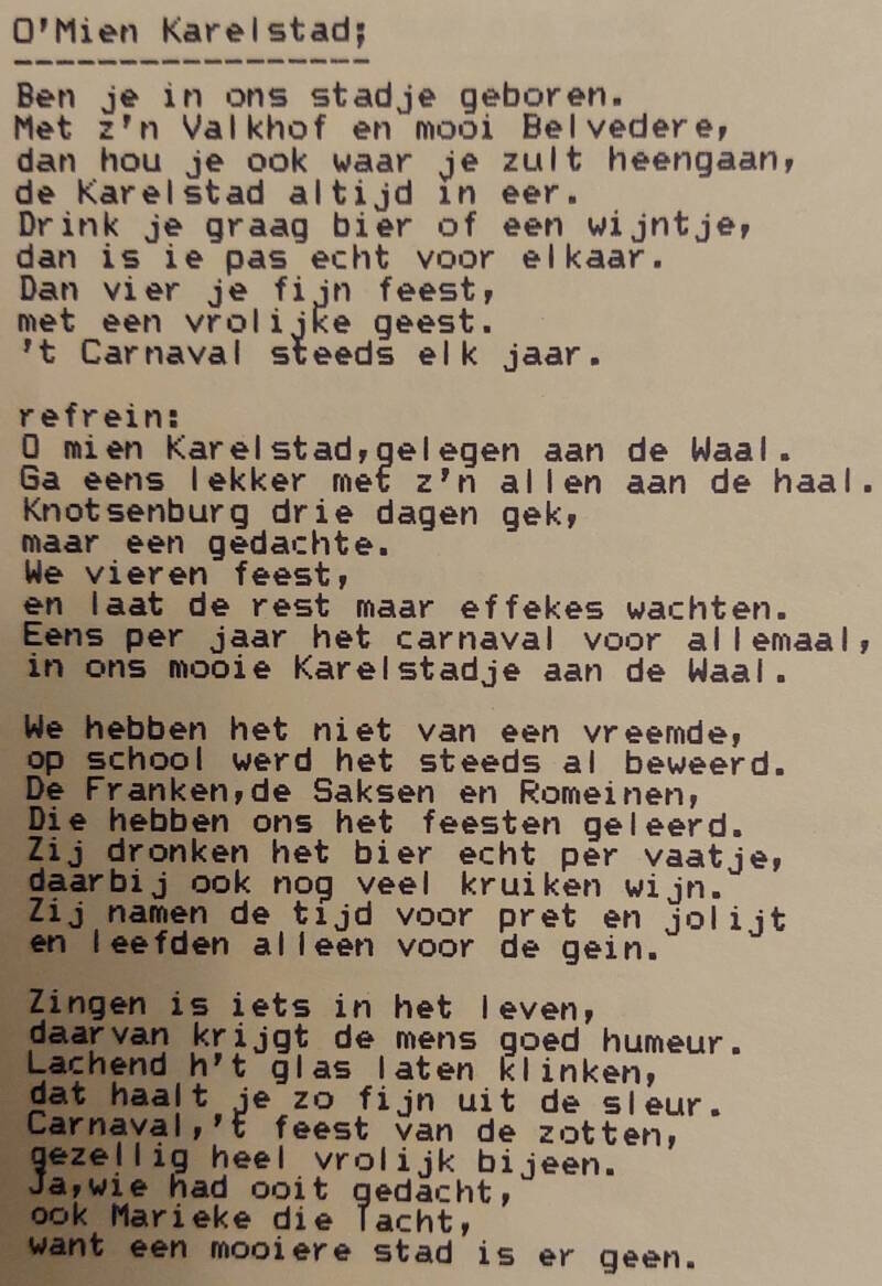 Vier dagen carnaval dat geeft mij goeie zin,